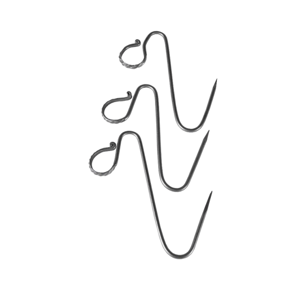 Набор крюков из трёх штук для рёбрышек предназначен для удобного подвешивания свиных или бараньих рёбер в тандыре. Благодаря прочному материалу и эргономичному дизайну, каждый крюк легко выдерживает вес даже крупных порций мяса. Компактные размеры позволяют удобно хранить крюки вместе с другим аксессуарами.