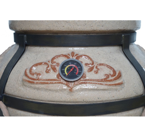 Незаменимый помощник при готовке сочных блюд в тандыре. С помощью данного термометра для тандыра можно увидеть, в каком из 4 температурных режимов Вы сейчас готовите: копчение (до 120°С), запекание (120-190°С), поджаривание (190-275°С), обжарка (275-400°С).