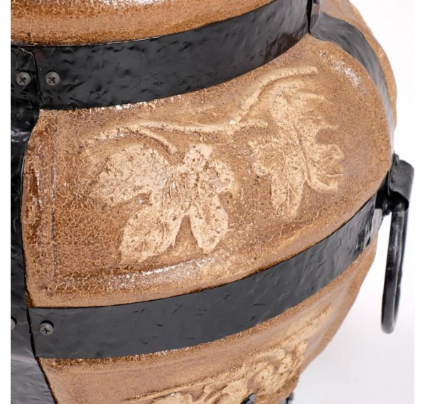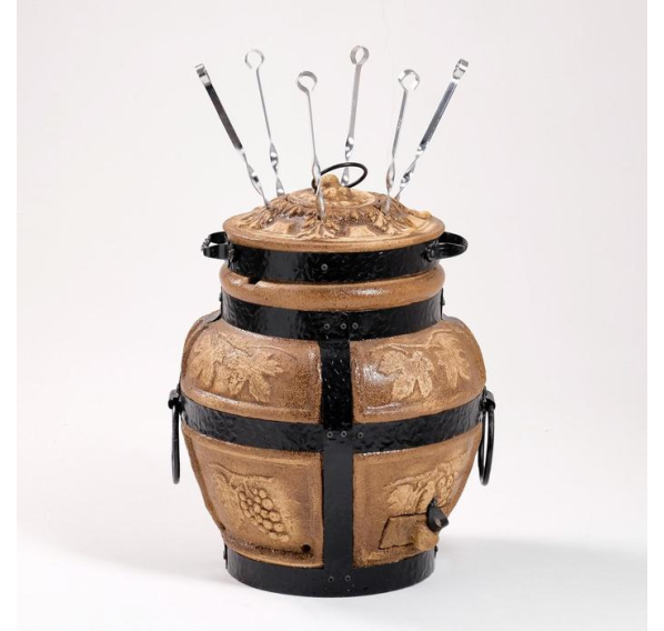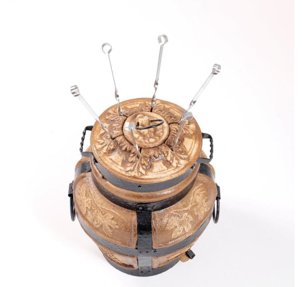 Электрический тандыр "Барельеф-Малый" с потребляемой мощностью 1,5 кВт позволяет готовить пищу не на улице, а в помещении. При этом никакого дыма или запаха не будет. Это очень удобно не только для семейного использования, но и для кафе, ресторанов и баров. Для безопасного использования тандыр заключён в стальную окантовку с элементами ковки, поэтому он не требует предварительного "закаливания".