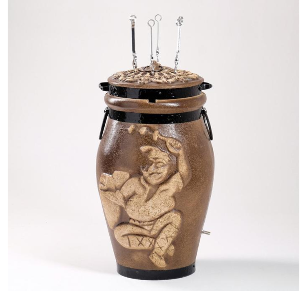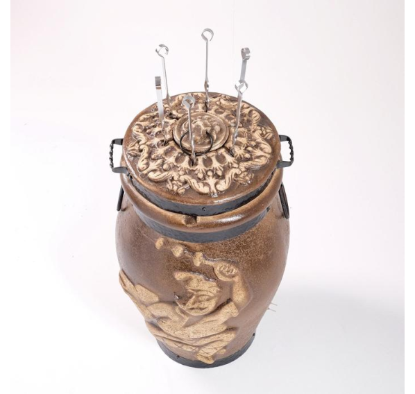 Электрический тандыр "Барельеф" с потребляемой мощностью 1,5 кВт позволяет готовить пищу не на улице, а в помещении. При этом никакого дыма или запаха не будет. Это очень удобно не только для семейного использования, но и для кафе, ресторанов и баров. Для безопасного использования тандыр заключён в стальную окантовку с элементами ковки, поэтому он не требует предварительного "закаливания".