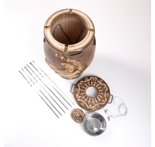 тандыр, шампуры, жиросборник, элемент нагревания, защитная сетка, кабель питания