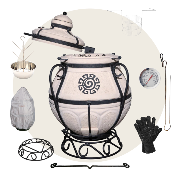 Приобрести тандыр с дополнительными аксессуарами в комплекте выйдет дешевле, нежели докупать всё по-отдельности. Комплект включает в себя самые необходимые аксессуары допустимые к данной модели тандыра.
