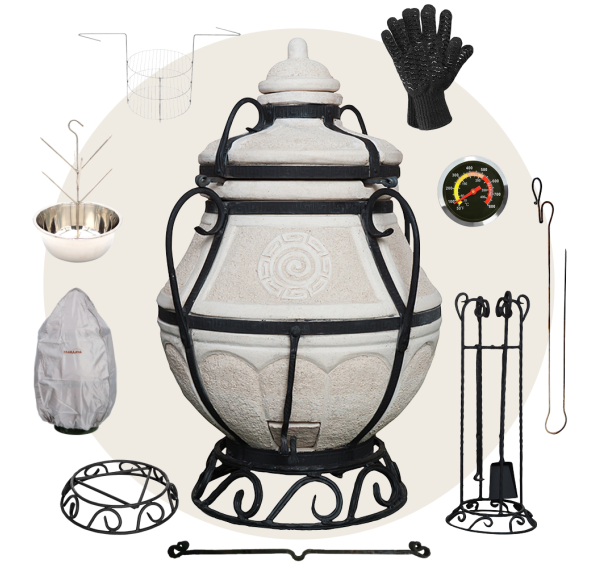 Приобрести тандыр с дополнительными аксессуарами в комплекте выйдет дешевле, нежели докупать всё по-отдельности. Комплект включает в себя самые необходимые аксессуары допустимые к данной модели тандыра.