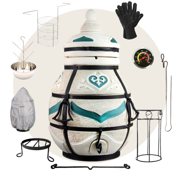 Приобрести тандыр с дополнительными аксессуарами в комплекте выйдет дешевле, нежели докупать всё по-отдельности. Комплект включает в себя самые необходимые аксессуары допустимые к данной модели тандыра.