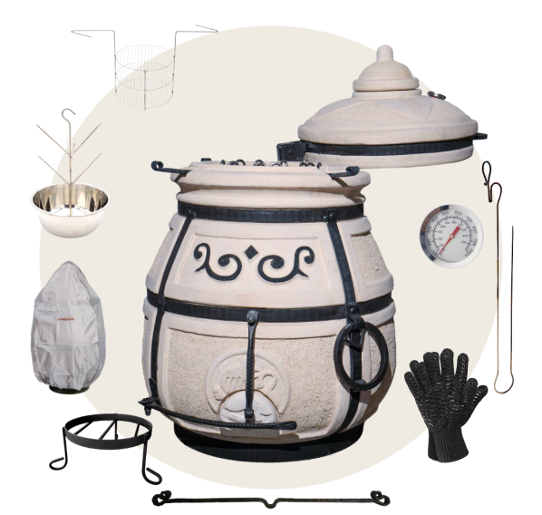 Приобрести тандыр с дополнительными аксессуарами в комплекте выйдет дешевле, нежели докупать всё по-отдельности. Комплект включает в себя самые необходимые аксессуары допустимые к данной модели тандыра.