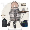 тандыр, шампуры, кочерга, совок, колосник, приспособление для подвешивания шампуров, термометр, жароотсекатель, столик, колёса - 4 шт., чехол на тандыр, этажерка 3-х ярусная большая, ёлочка 28 см с высоким бортом и т.д.