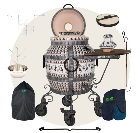Приобрести тандыр с дополнительными аксессуарами в комплекте выйдет дешевле, нежели докупать всё по-отдельности. Комплект включает в себя самые необходимые аксессуары допустимые к данной модели тандыра.