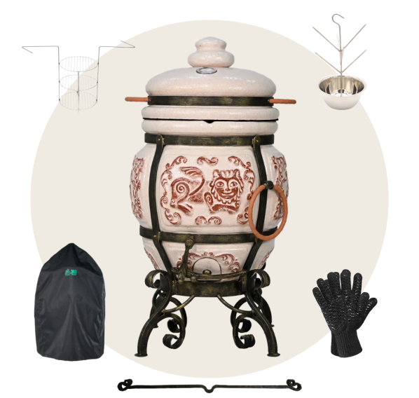 Приобрести тандыр с дополнительными аксессуарами в комплекте выйдет дешевле, нежели докупать всё по-отдельности. Комплект включает в себя самые необходимые аксессуары допустимые к данной модели тандыра.