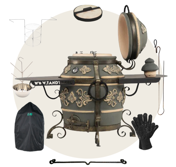 Приобрести тандыр с дополнительными аксессуарами в комплекте выйдет дешевле, нежели докупать всё по-отдельности. Комплект включает в себя самые необходимые аксессуары допустимые к данной модели тандыра.
