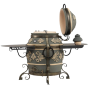 тандыр, шампуры, кочерга, совок, колосник, приспособление для подвешивания шампуров, термометр, жароотсекатель, столики - 2 шт., чехол на тандыр, этажерка 3-х ярусная средняя, ёлочка 21 см с высоким бортом, шампур двойной, перекладина, перчатки