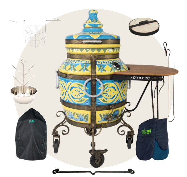 Приобрести тандыр с дополнительными аксессуарами в комплекте выйдет дешевле, нежели докупать всё по-отдельности. Комплект включает в себя самые необходимые аксессуары допустимые к данной модели тандыра.