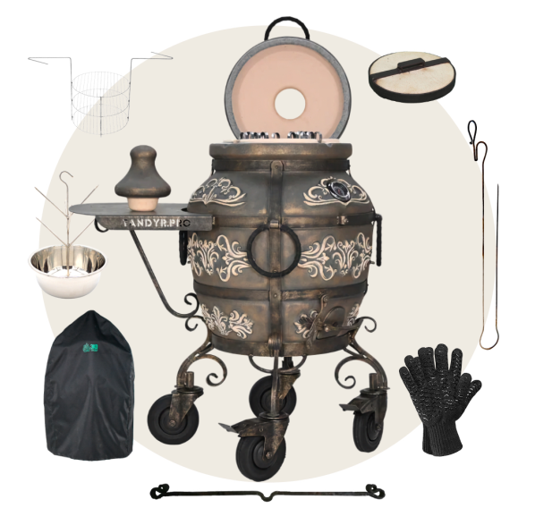Приобрести тандыр с дополнительными аксессуарами в комплекте выйдет дешевле, нежели докупать всё по-отдельности. Комплект включает в себя самые необходимые аксессуары допустимые к данной модели тандыра.