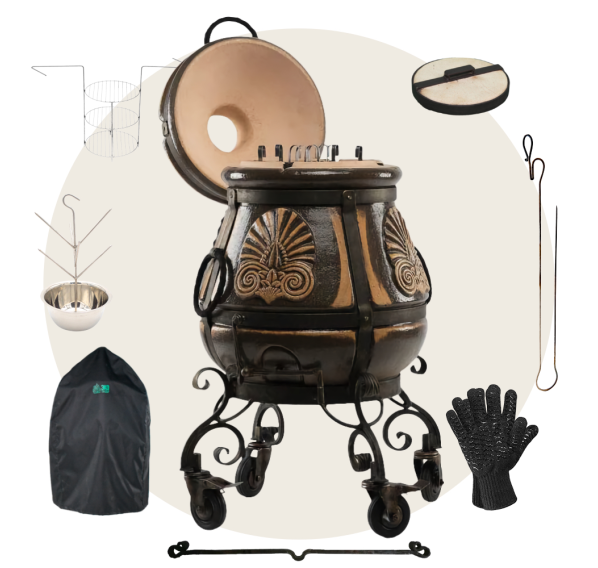 Приобрести тандыр с дополнительными аксессуарами в комплекте выйдет дешевле, нежели докупать всё по-отдельности. Комплект включает в себя самые необходимые аксессуары допустимые к данной модели тандыра.