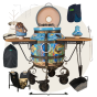 тандыр, шампуры, кочерга, совок, колосник, крестовина, термометр, жароотсекатель, столик - 2 шт., колёса - 4 шт., дополнительный колпачок, чехол на тандыр, рукавицы-прихватки, зольный ящик, сумка-переноска-дровница, этажерка 3-х ярусная большая и т.д.