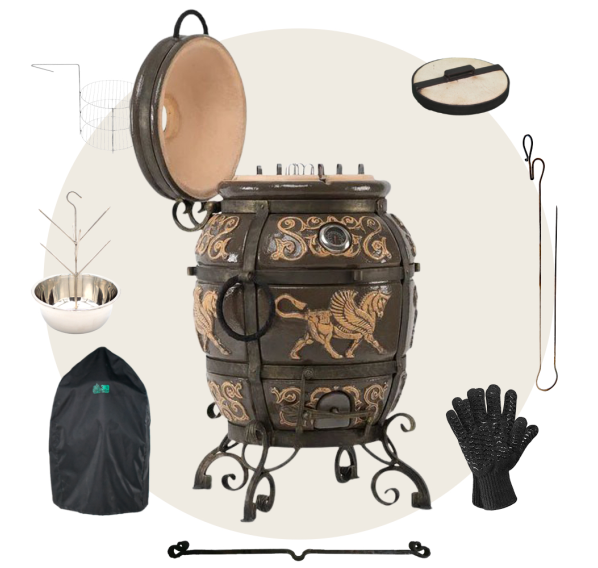 Приобрести тандыр с дополнительными аксессуарами в комплекте выйдет дешевле, нежели докупать всё по-отдельности. Комплект включает в себя самые необходимые аксессуары допустимые к данной модели тандыра.