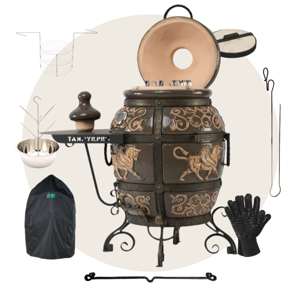 Приобрести тандыр с дополнительными аксессуарами в комплекте выйдет дешевле, нежели докупать всё по-отдельности. Комплект включает в себя самые необходимые аксессуары допустимые к данной модели тандыра.