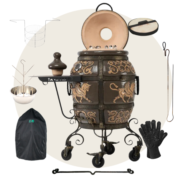 Приобрести тандыр с дополнительными аксессуарами в комплекте выйдет дешевле, нежели докупать всё по-отдельности. Комплект включает в себя самые необходимые аксессуары допустимые к данной модели тандыра.