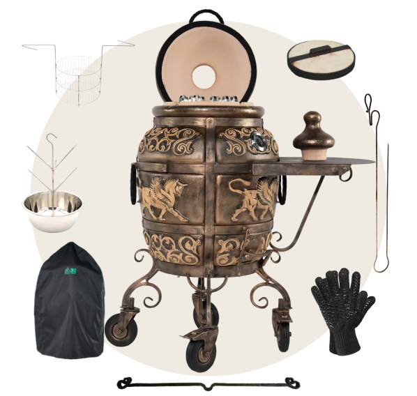 Приобрести тандыр с дополнительными аксессуарами в комплекте выйдет дешевле, нежели докупать всё по-отдельности. Комплект включает в себя самые необходимые аксессуары допустимые к данной модели тандыра.