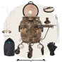 тандыр, шампуры, кочерга, совок, колосник, приспособление для подвешивания шампуров, термометр, жароотсекатель, столик, колёса - 4 шт., чехол на тандыр, этажерка 3-х ярусная большая, ёлочка 28 см с высоким бортом, шампур двойной, перекладина, перчатки
