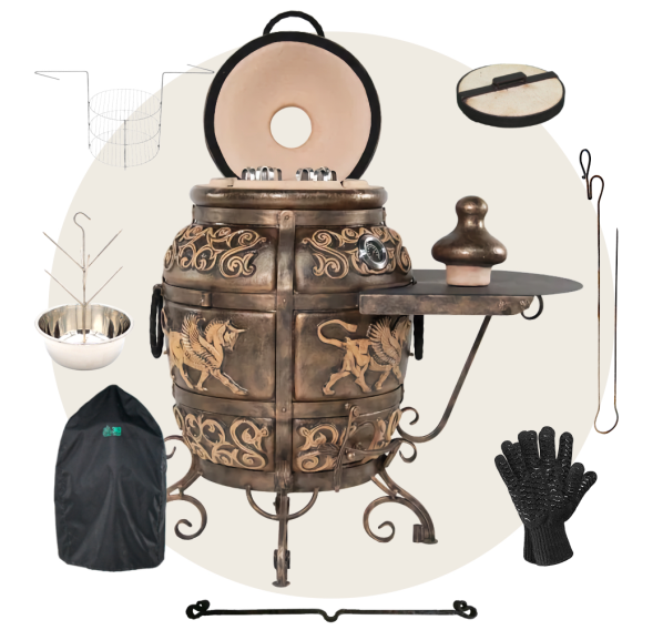 Приобрести тандыр с дополнительными аксессуарами в комплекте выйдет дешевле, нежели докупать всё по-отдельности. Комплект включает в себя самые необходимые аксессуары допустимые к данной модели тандыра.