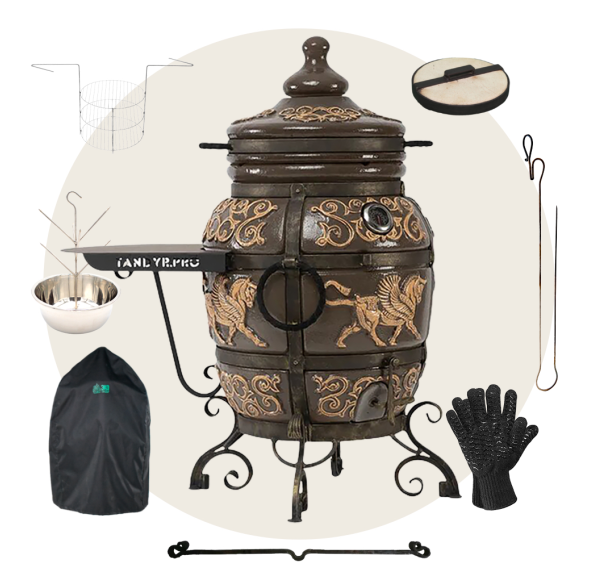 Приобрести тандыр с дополнительными аксессуарами в комплекте выйдет дешевле, нежели докупать всё по-отдельности. Комплект включает в себя самые необходимые аксессуары допустимые к данной модели тандыра.