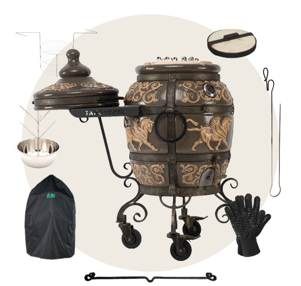 Приобрести тандыр с дополнительными аксессуарами в комплекте выйдет дешевле, нежели докупать всё по-отдельности. Комплект включает в себя самые необходимые аксессуары допустимые к данной модели тандыра.