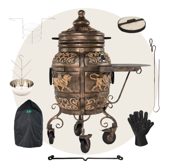 Приобрести тандыр с дополнительными аксессуарами в комплекте выйдет дешевле, нежели докупать всё по-отдельности. Комплект включает в себя самые необходимые аксессуары допустимые к данной модели тандыра.
