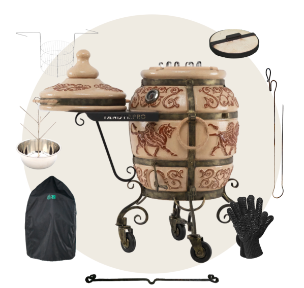 Приобрести тандыр с дополнительными аксессуарами в комплекте выйдет дешевле, нежели докупать всё по-отдельности. Комплект включает в себя самые необходимые аксессуары допустимые к данной модели тандыра.