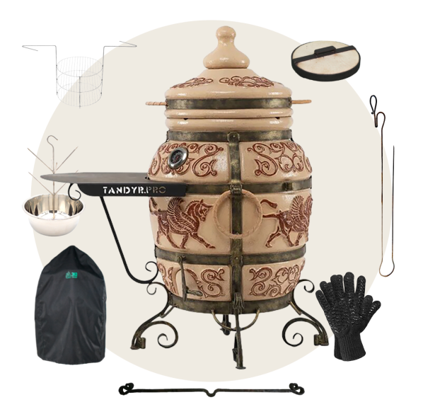 Приобрести тандыр с дополнительными аксессуарами в комплекте выйдет дешевле, нежели докупать всё по-отдельности. Комплект включает в себя самые необходимые аксессуары допустимые к данной модели тандыра.