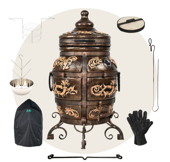 Приобрести тандыр с дополнительными аксессуарами в комплекте выйдет дешевле, нежели докупать всё по-отдельности. Комплект включает в себя самые необходимые аксессуары допустимые к данной модели тандыра.