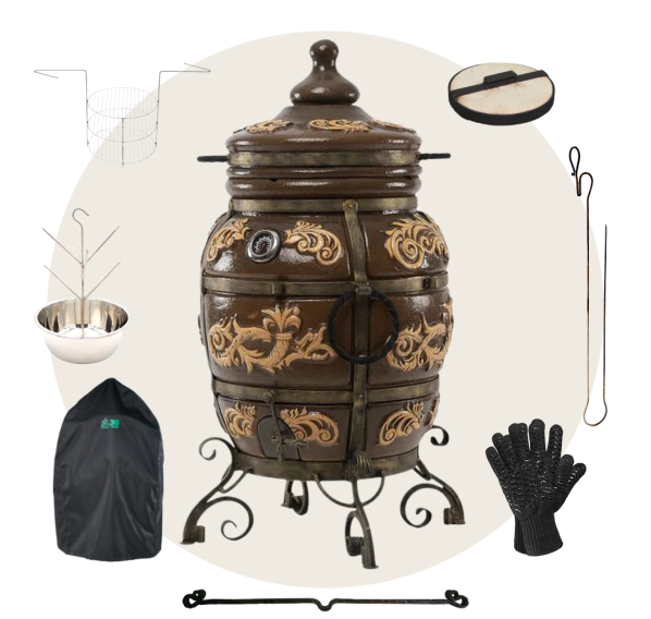 Приобрести тандыр с дополнительными аксессуарами в комплекте выйдет дешевле, нежели докупать всё по-отдельности. Комплект включает в себя самые необходимые аксессуары допустимые к данной модели тандыра.