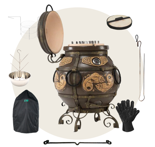 Приобрести тандыр с дополнительными аксессуарами в комплекте выйдет дешевле, нежели докупать всё по-отдельности. Комплект включает в себя самые необходимые аксессуары допустимые к данной модели тандыра.