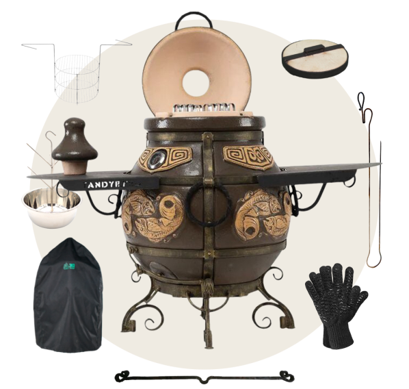 Приобрести тандыр с дополнительными аксессуарами в комплекте выйдет дешевле, нежели докупать всё по-отдельности. Комплект включает в себя самые необходимые аксессуары допустимые к данной модели тандыра.