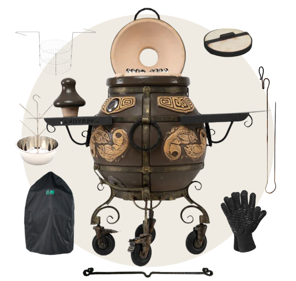 Приобрести тандыр с дополнительными аксессуарами в комплекте выйдет дешевле, нежели докупать всё по-отдельности. Комплект включает в себя самые необходимые аксессуары допустимые к данной модели тандыра.