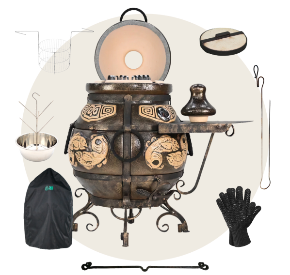 Приобрести тандыр с дополнительными аксессуарами в комплекте выйдет дешевле, нежели докупать всё по-отдельности. Комплект включает в себя самые необходимые аксессуары допустимые к данной модели тандыра.