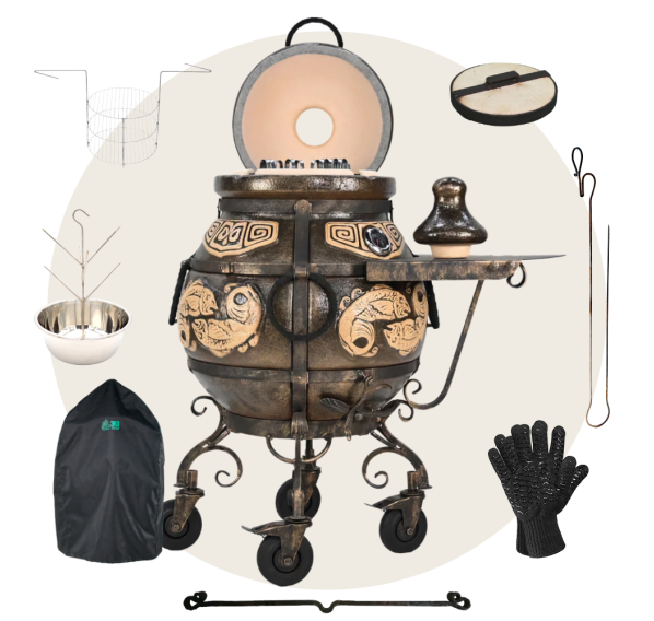 Приобрести тандыр с дополнительными аксессуарами в комплекте выйдет дешевле, нежели докупать всё по-отдельности. Комплект включает в себя самые необходимые аксессуары допустимые к данной модели тандыра.