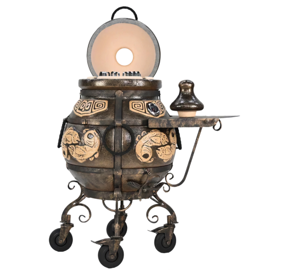 Объёмный, удобный, красивый! Тандыр "ЭКОтандыр-Шар" — это одна из удачных моделей тандыров, так как распределение тепла от стенок внутри происходит более равномерно. Механизм откидывания большой крышки уже отработанная и оправданная опция, широкая горловина для любых экспериментов с приготовлениями блюд. В качестве узоров используется стилистически выполненный иероглиф богатства, успеха (удачи) или узор двух рыб символ счастья, успеха, изобилия. В общем тандыр — оберег, не иначе. А как он готовит... Это надо попробовать!