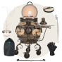 тандыр, шампуры, кочерга, совок, колосник, приспособл. для подвеш. шампуров, термометр, жароотсекатель, столик, колёса - 4 шт., чехол на тандыр, этажерка 3-х ярусная большая, ёлочка 28 см с высоким бортом, шампур двойной, перекл., перчатки