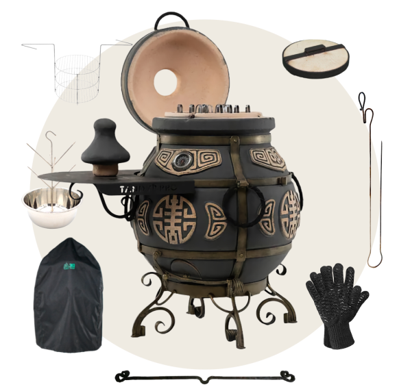 Приобрести тандыр с дополнительными аксессуарами в комплекте выйдет дешевле, нежели докупать всё по-отдельности. Комплект включает в себя самые необходимые аксессуары допустимые к данной модели тандыра.