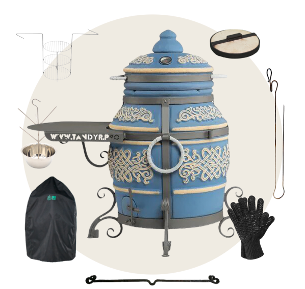 Приобрести тандыр с дополнительными аксессуарами в комплекте выйдет дешевле, нежели докупать всё по-отдельности. Комплект включает в себя самые необходимые аксессуары допустимые к данной модели тандыра.