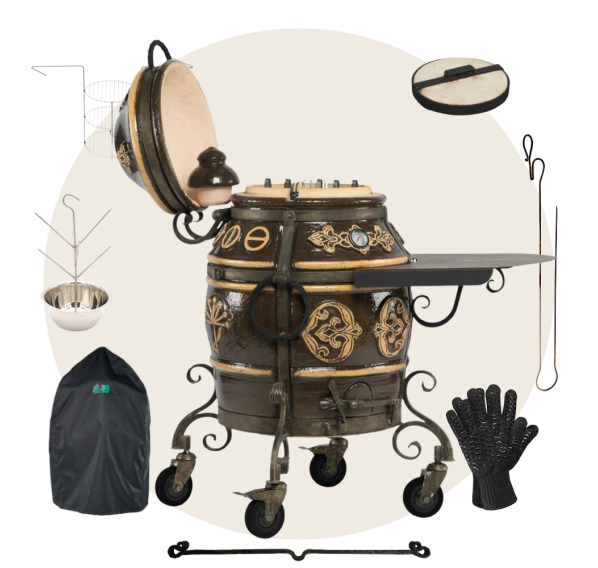 Приобрести тандыр с дополнительными аксессуарами в комплекте выйдет дешевле, нежели докупать всё по-отдельности. Комплект включает в себя самые необходимые аксессуары допустимые к данной модели тандыра.
