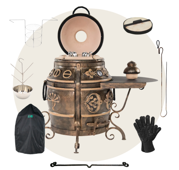 Приобрести тандыр с дополнительными аксессуарами в комплекте выйдет дешевле, нежели докупать всё по-отдельности. Комплект включает в себя самые необходимые аксессуары допустимые к данной модели тандыра.