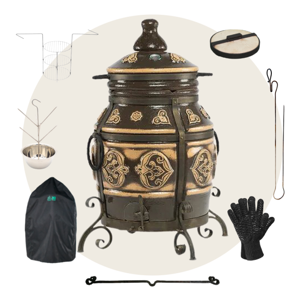 Приобрести тандыр с дополнительными аксессуарами в комплекте выйдет дешевле, нежели докупать всё по-отдельности. Комплект включает в себя самые необходимые аксессуары допустимые к данной модели тандыра.