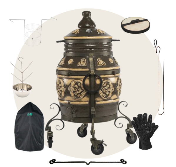 Приобрести тандыр с дополнительными аксессуарами в комплекте выйдет дешевле, нежели докупать всё по-отдельности. Комплект включает в себя самые необходимые аксессуары допустимые к данной модели тандыра.