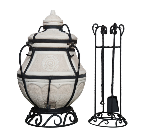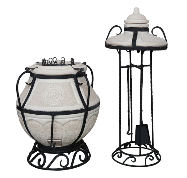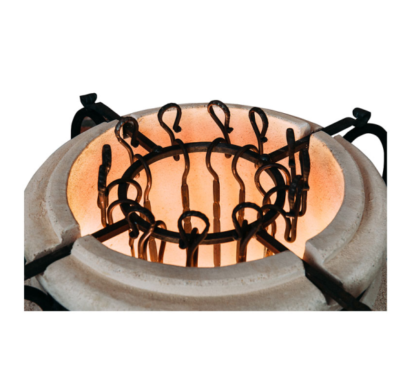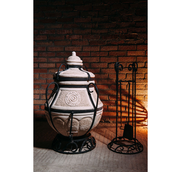 4 ручки делают переноску 100-килограммового изделия удобной, а входящие в комплект подставка под сам тандыр и подставка под крышку с держателем инструментов позволяют достичь максимального комфорта без лишних хлопот и вложений. Естественно, это не означает, что тандыр "Амфора-Аладдин-mini" не нуждается ни в каких аксессуарах, просто его начальная комплектация выгодно отличает его от остальных изделий схожего размера и цены.
