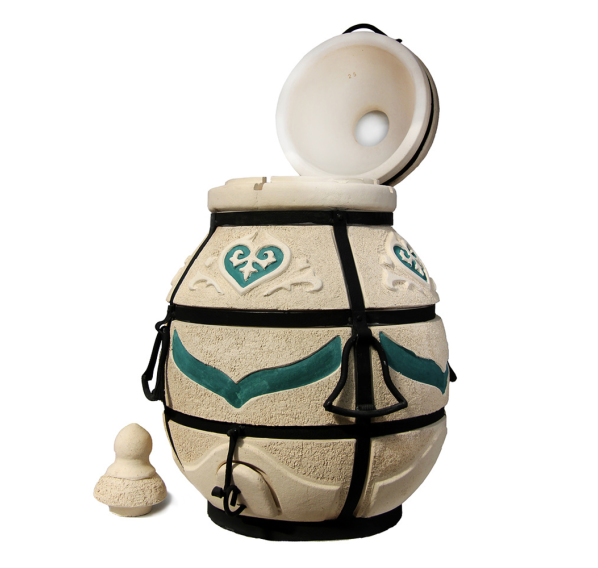 Продуманная форма чаши позволит с одинаковой лёгкостью приготовить не только мясо в тандыре и баранью ногу, но и печь хлеб! Широкая горловина отлично подходит для использования 4-х ярусной этажерки и одновременного использования нескольких крюков!
