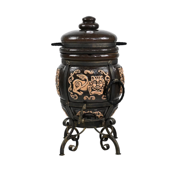 Тандыр покрыт глянцевой глазурью с орнаментом.