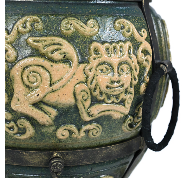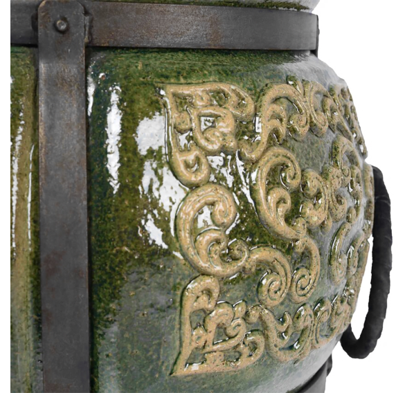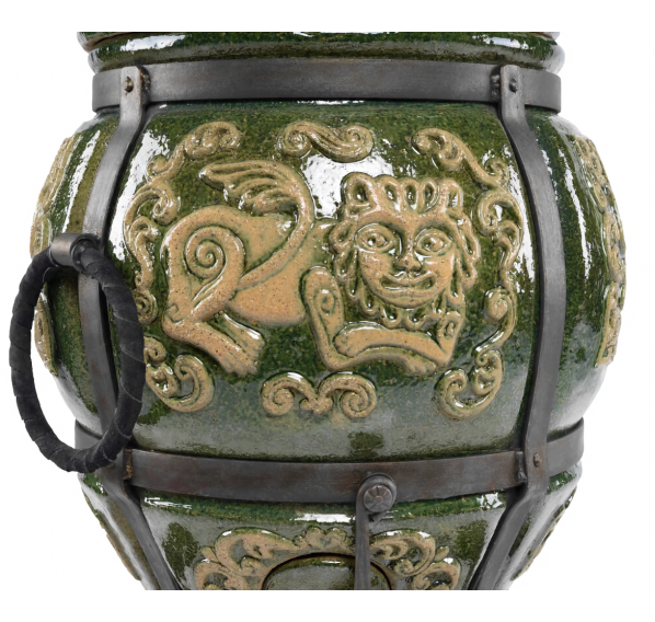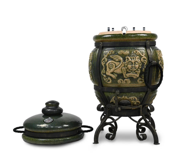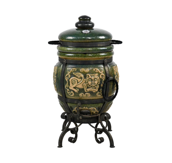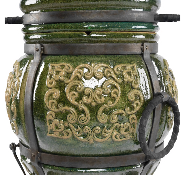 Тандыр покрыт глянцевой глазурью с орнаментом.