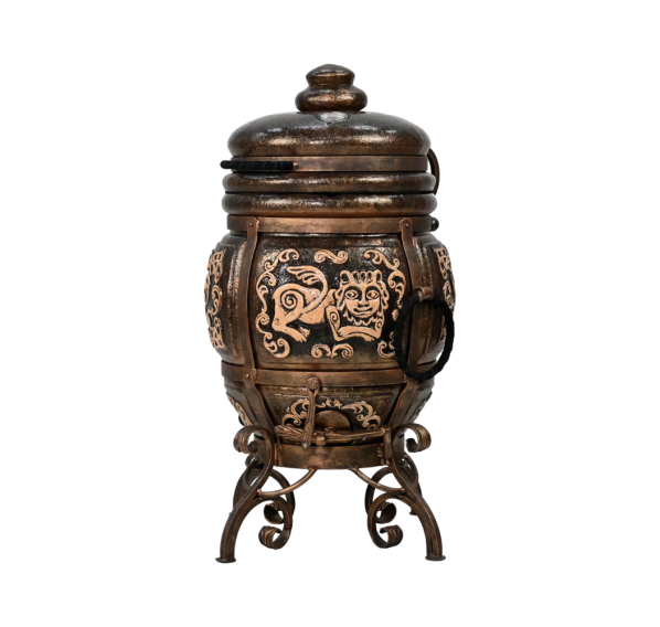 Тандыр покрыт глянцевой глазурью с орнаментом.
