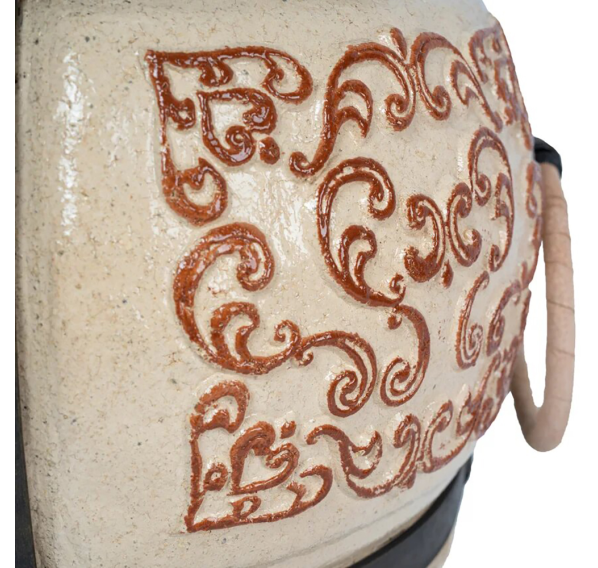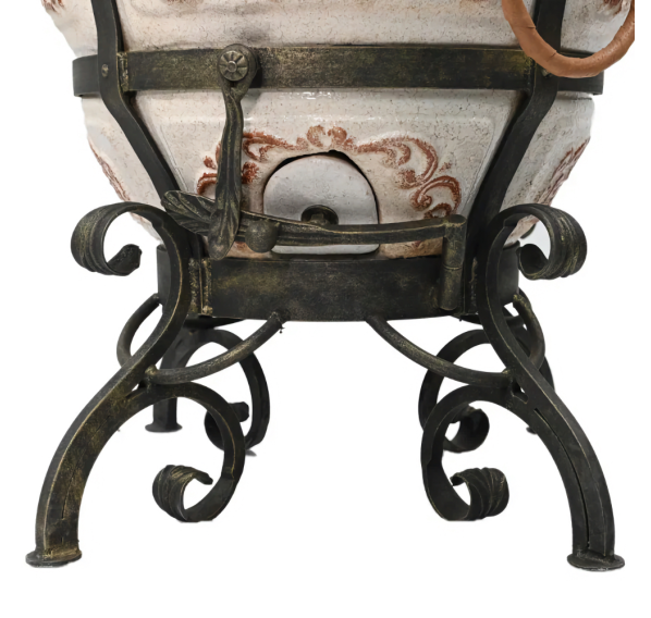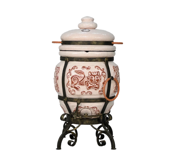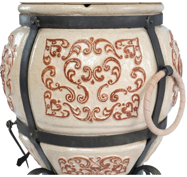 Тандыр покрыт глянцевой глазурью с орнаментом.